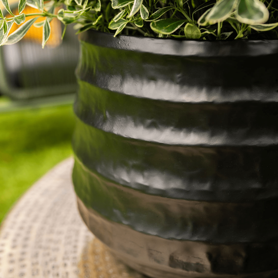 Elke pot is met liefde met de hand gemaakt, met behulp van hamertechnieken voor een mooie organische vorm. Ze zijn speciaal ontworpen voor buiten, met een handige plug onderin voor goede drainage. De potten hebben een prachtige matte glanscoating die het vakmanschap en de kwaliteit benadrukt.